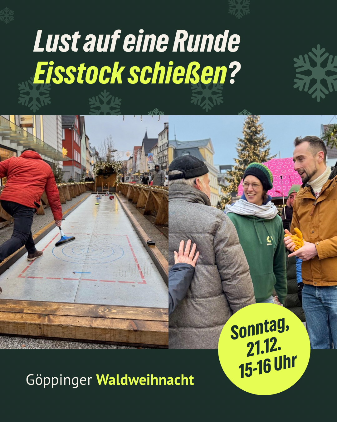 Wenn du am Sonntag vor Weihnachten Zeit und Lust auf eine Runde Eisstock schießen auf der Waldweihnacht hast, komm vorbei. Wir sind zwischen 15 und 16 Uhr dort und freuen uns, wenn Gäste dazu kommen.