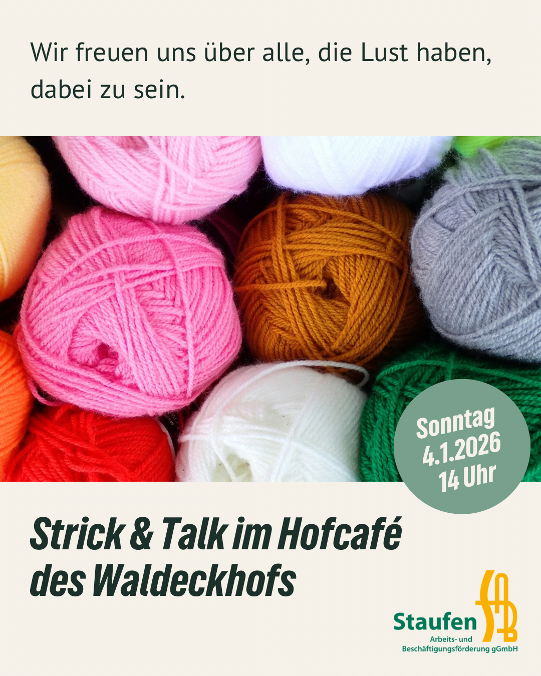 Wenn ihr gerne strickt oder auch einfach nur Lust habt auf gemütliches Beisammensein, dann kommt am 04.01.2024 ins Hofcafé des Waldeckhofs.