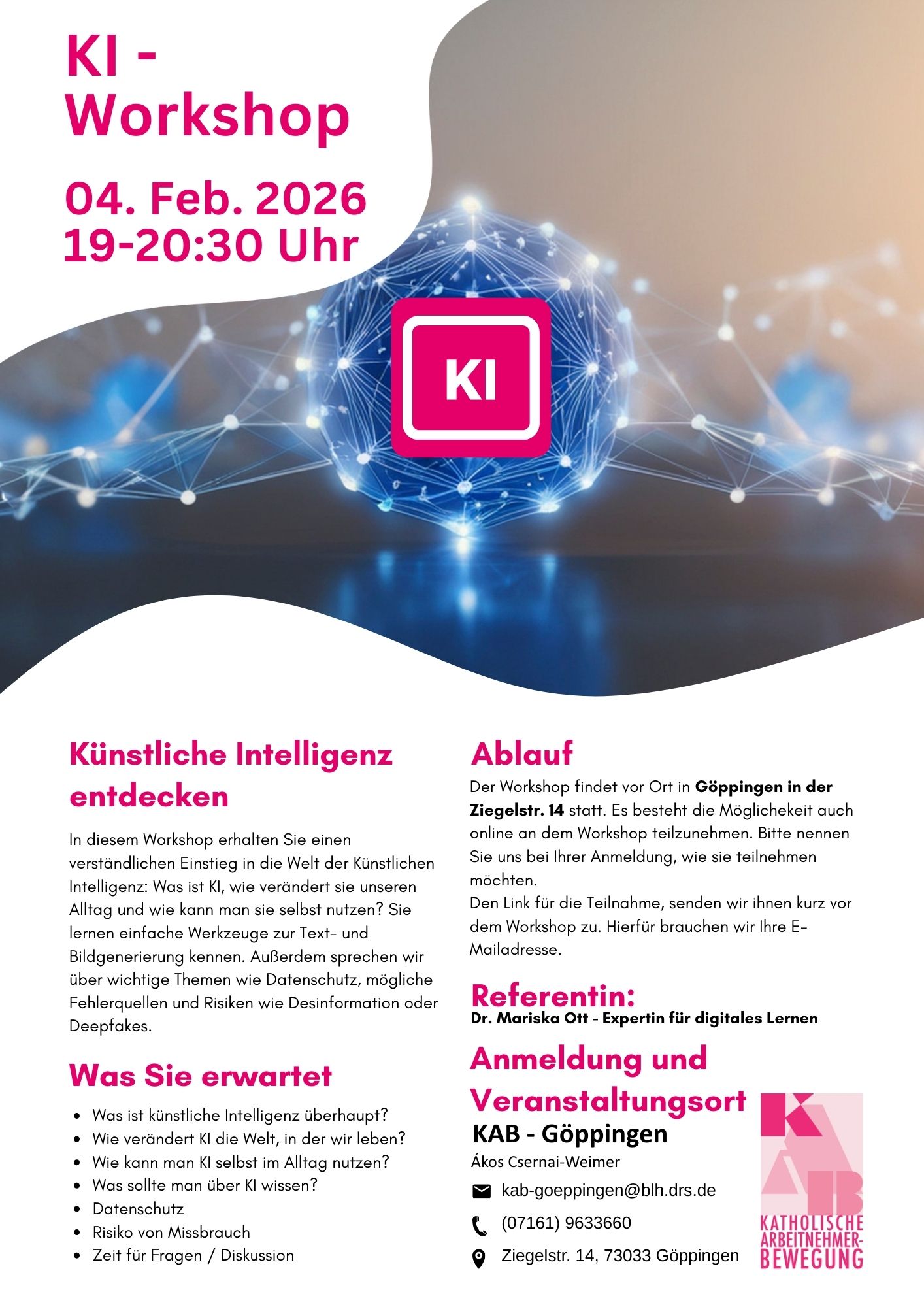 Gerne möchte ich mein vorhandenes Wissen teilen und daher freue ich mich, dass ich das im Rahmen eines Workshops der Katholischen Arbeitnehmer-Bewegung tun darf.